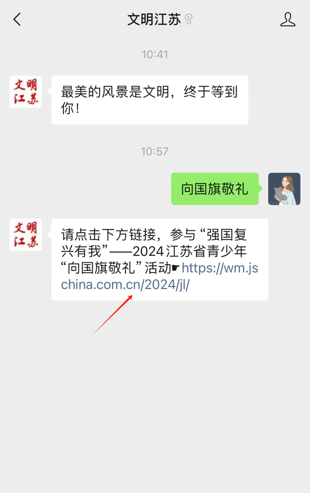 2.发送【向国旗敬礼】关键词至公众号后台,获取活动链接