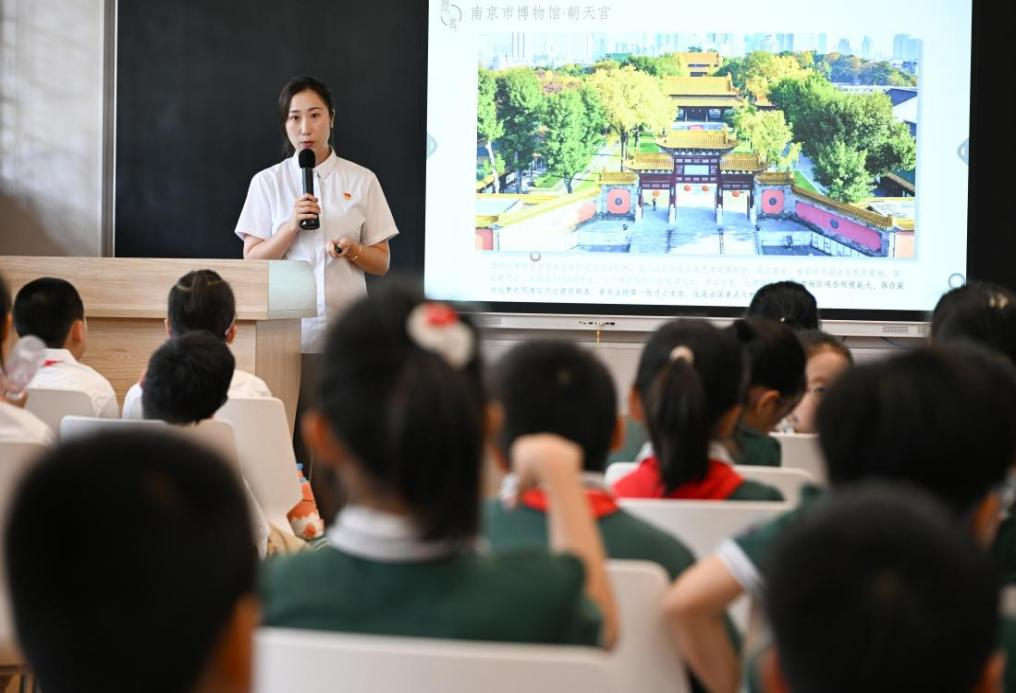 六朝古都,十朝都会,时代兴替,变幻万千。南京,这座见证了无数风云变幻的古城,承载着丰富的历史文化记忆。由南京市博物馆文博馆员史弘扬老师主讲的《历史长河·传承》讲座,如同打开了一扇通往过去的大门,引领着少年们穿越时空,感受南京6000余年的文明历程。从范蠡建越城的传奇故事,到孙权定都南京的伟大决策,再到瓦当、城墙、中山陵等标志性建筑的变迁,史老师以生动的语言,串联起一幅幅历史画卷。鼓楼区第一中心小学的马钦诺同学兴奋地分享道:“这次讲座让我仿佛亲身经历了南京的沧桑巨变,历史的厚重让我很敬佩。”
