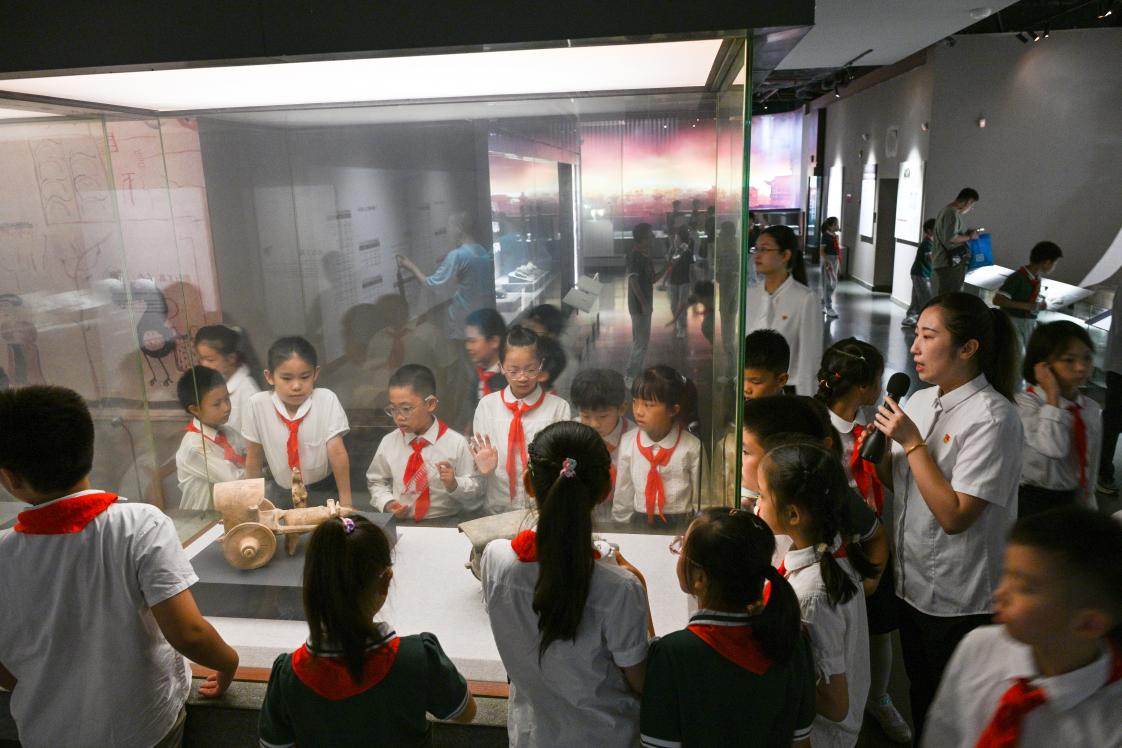 器物无声,观其有魂。在“文物里的历史”环节中,史弘扬老师带领少年们走进南京市博物馆,进行了一场别具一格的文物探索之旅。从远古时期的猿人头骨化石,到近代的浦口火车站,再到各式各样的陶塑面具,少年们的好奇心被充分激发,吸引他们用眼睛去发现,用心去感受。鼓楼区第一中心小学的湛孝睿同学难掩激动之情:“这里的一切都是那么神奇,我在这里不仅学到了知识,更感受到了文化的魅力。”热爱中华传统文化的种子在少年们的心中萌芽。