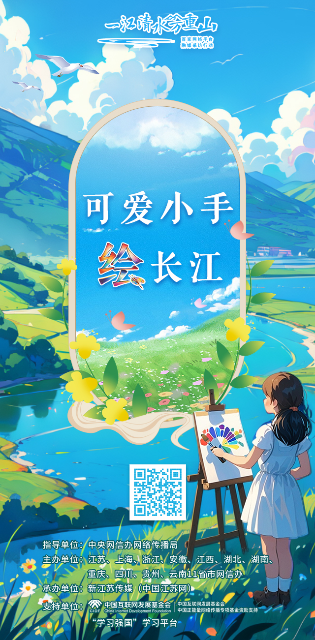 在中央网信办网络传播局指导下,江苏携手长江经济带10省市网信办,开启“一江清水万重山”网络主题活动。作为子活动之一,“可爱小手绘长江 美丽中国在心间”手绘大赛邀请广大青少年手绘长江沿岸美景,从我做起,争做“共抓大保护”的小小宣传员,将绿色发展理念融入生活。