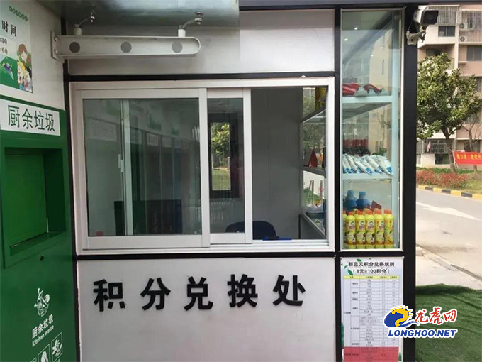 同时,生活垃圾房设有积分兑换处,集合了积分登记、积分兑换以及物品展示的功能,窗口处有专门的工作人员正在为前来投放垃圾的居民读卡登记,橱窗里各类兑换商品琳琅满目,门房下的显著位置张贴有积分登记规则,规则设置合理严谨,对于可回收垃圾基本是按重量换取积分,有害垃圾是按个数兑换,而家家户户每天都会产生的厨余垃圾,则是按次数兑换且每日不超过2次,有效促进居民对各类生活垃圾综合而又全面的投放,同时避免了为刷积分而无中生有的投放行为。