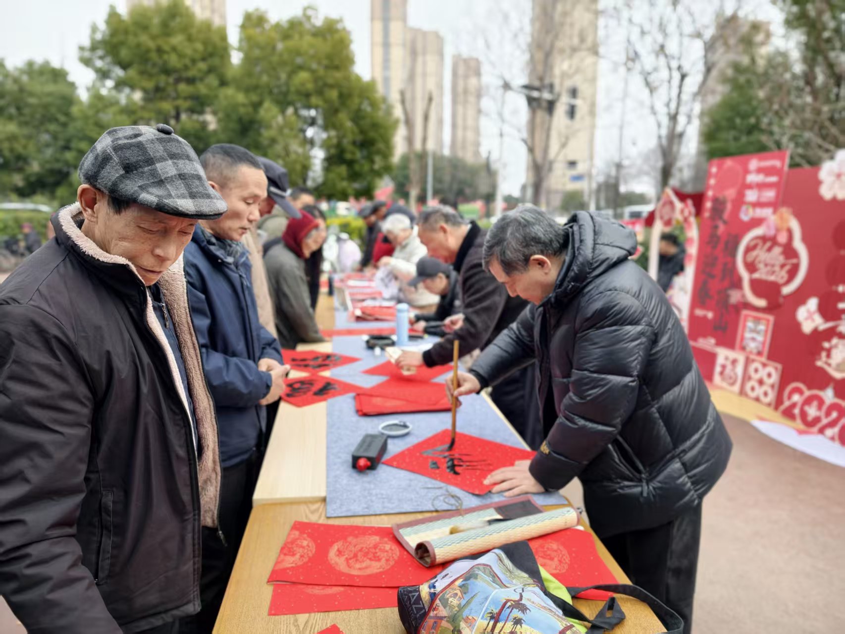 大新社区“福满大新 市集迎新春”便民服务活动一站式迎新春!写春联、拓福字、投壶游戏、便民服务齐上阵,居民齐聚广场享服务、品年俗。