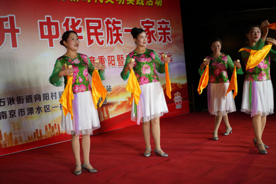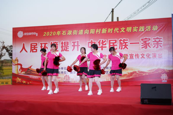 弘扬向阳文化,不仅需要“引进来”,更要“走出去”,走出一条以文化宣传为引擎、加速美丽乡村振兴的小康致富之路。在波光粼粼的石臼湖畔,偌大观景台上矗立着一块造型精巧的引导牌,上面印着“蓝色向阳志愿服务点”。每周五傍晚,夕阳西下,余晖散落,水鹭鸣飞,在天光云影共徘徊的潋潋水波中,文化向阳志愿队的表演总会准时开始,广场舞、小快板、戏曲联唱、趣味小品………精彩纷呈的向阳文化在抖音直播间引发围观热潮同时,也在现场赢得了游客们热烈欢呼,不少游客现场录下视频,第一时间发送朋友圈共享…………在石臼湖畔创建志愿服务点、搭建演出平台是向阳村实践站弘扬地方文化的一项创新举措,自10月首演以来,已经接待了上千名外地游客,“文化向阳”成为向阳越过万顷碧湖、走向外界的一张熠熠生辉的名片。