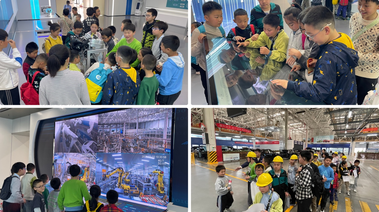 随后,少先队员们戴上安全帽,排着整齐的队伍,有序进入生产车间。在宽敞明亮的车间里,高度自动化的生产线高速运转,机械臂精准地抓取、焊接、组装零件,工人们专注地操作着设备,整个生产过程紧张而有序。少先队员们被眼前壮观的景象深深吸引,他们一边认真聆听讲解员的介绍,一边仔细观察每一个生产环节,不时提出自己的疑问。看到一辆辆崭新的新能源汽车在流水线上逐渐成型,队员们纷纷发出赞叹,深刻感受到了科技创新带来的巨大力量。