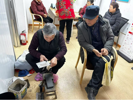 一大早,社区居家养老点热闹非凡,居民们络绎不绝地赶来,脸上洋溢着期待与喜悦。活动现场设置了多个便民服务摊位,包括免费磨刀、理发、小家电维修、健康义诊等,为社区居民提供实实在在的帮助,解决生活中的小难题。