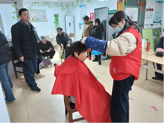 技艺娴熟的理发师为居民们修剪出整洁的发型,展现新风貌。现场气氛其乐融融,就像一个温馨的大家庭聚会。