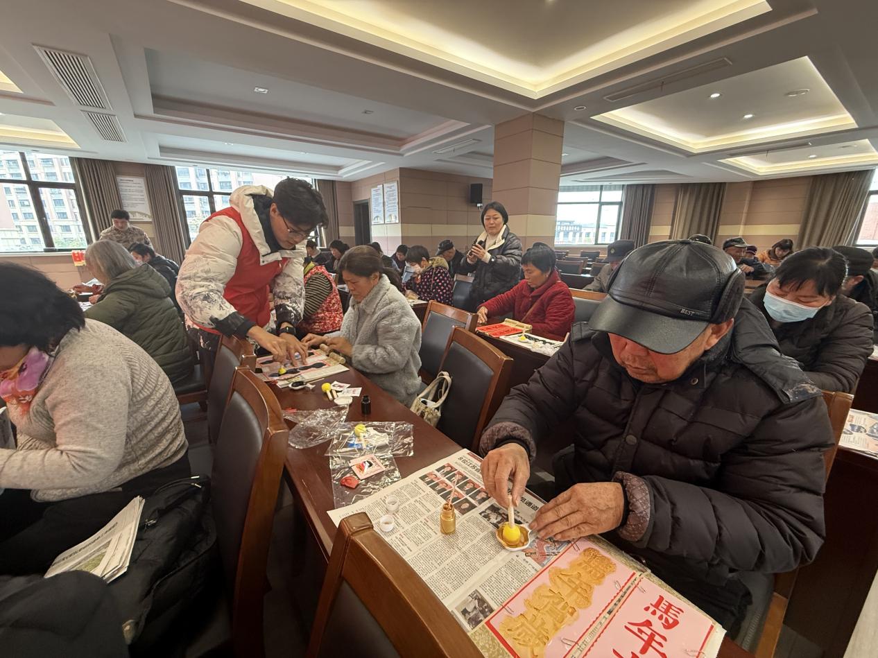 在民俗体验区,志愿者详细介绍着拓印技艺的历史渊源:“春联拓印始于宋代,是古人传递祝福的智慧结晶,每一道工序都承载着对美好生活的期许。”居民们纷纷挑选心仪的“龙马精神”“福满家门”等吉祥模板,在志愿者的指导下动手尝试,鲜红的宣纸与乌黑的墨迹碰撞出别样韵味,一幅幅亲手拓印的春联承载着满满心意。居民胡忠琴说,第一次拓印春联,感觉很有意义。