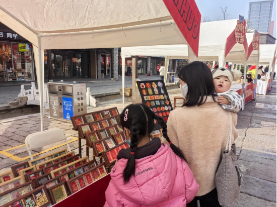 在非遗传承人的现场指导下,市民们亲手体验剪窗花的乐趣,指尖翻飞间感受传统文化的独特魅力,大家将剪好的窗花作为新春纪念,在互动体验中传递新春祝福,让非遗文化在新春氛围中焕发出新的生机。带着孩子体验非遗窗花的市民李先生表示:“既能买年货,又能感受传统文化,还能玩游戏,孩子玩得特别开心,年味特别足!”