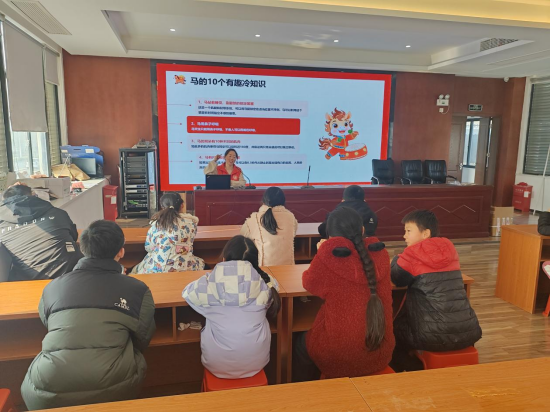 活动在轻松有趣的马年生肖知识讲解中拉开帷幕。文化志愿者张老师从生肖起源讲起,通过图文并茂的展示,向孩子们介绍了“马”在中国传统文化中的丰富寓意。“你们知道吗?马不仅是十二生肖之一,在中华文化中还象征着勇往直前、自强不息的精神。”“从‘马到成功’的祝福到‘龙马精神’的赞美,马文化已经深深融入我们的语言和生活中。”