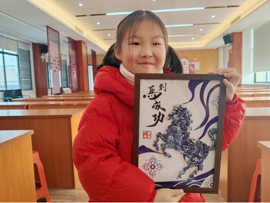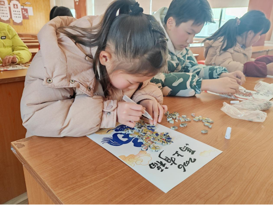 工作台上,五颜六色的陶瓷片、专用胶水、底板和各种装饰材料一应俱全。在老师的指导下,孩子们开始设计并制作属于自己的“瓷韵骏马”。制作过程中,孩子们小心翼翼地将陶瓷片拼贴成图案,感受着不同形状、颜色瓷片在手中组合成艺术作品的奇妙过程。经过一个多小时的努力,一幅幅独具特色的陶瓷贴画陆续完成:有的马儿矫健俊朗,有的憨态可掬,每一幅都凝聚着小作者的巧思。