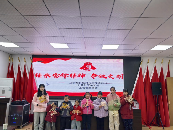 上港社区新时代文明实践站联合关工委、团委开展主题活动。志愿者通过PPT讲述雷锋生平事迹与经典语录,结合“学雷锋”主题宣讲文明礼仪与志愿服务规范,强调雷锋精神在新时代日常文明举止中的延伸。在干花竹编风铃手工环节,青年们在志愿者指导下将竹篾编织成风铃骨架,以干花、流苏装饰,经过精心制作,风铃随风摇曳、清脆悦耳。活动将非遗文化与“变废为宝”的环保理念相融合,让青少年在理论与实践中感悟雷锋精神的时代内涵。