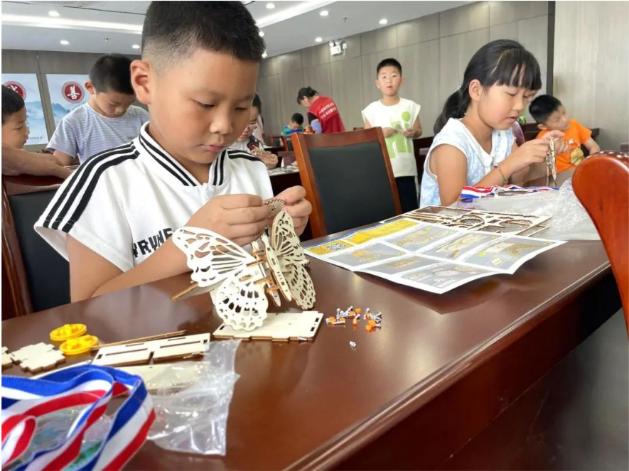 活动最后,老师带领大家制作木质蝴蝶,用通俗易懂、与学生互动的方式,结合木质蝴蝶的制作和安装,讲述了如何识别蝴蝶、蝴蝶的种类、蝴蝶的习性和一生的变化,以及蝴蝶与科技之间的联系、如何采集蝴蝶和制作蝴蝶标本等知识,将孩子们带入到了一个奇趣的蝴蝶世界。