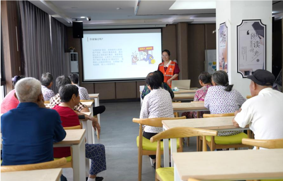 为帮助老年人了解电信诈骗的危害,提升老年人对电信诈骗的鉴别能力和防范意识,浦口区桥林街道福音社区新时代文明实践志愿服务大队开展“提升反诈意识 安享幸福晚年”反诈知识讲座。志愿者利用PPT及防诈骗小动画向老人们介绍了诈骗的九种常见类型及电信诈骗的四大特点,并用实际案例向老人宣传各类与日常生活密切相关的安全防范知识,提醒老人一定要提高警惕,不让诈骗分子有机可乘。随后志愿者深入老人家中走访,进一步普及反诈知识,使辖区更多老人构筑坚实的思想防线,并为老人送上一把带有反诈小知识的扇子,在科普的同时为老人送去一份清凉。