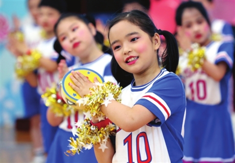昨天,苏州市沧浪实验小学举行集体舞会演,庆祝属于自己的节日。(记者 华雪根 摄)