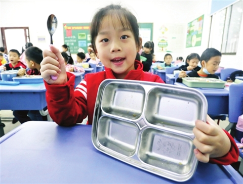 10月16日是“世界粮食日”,平江实验学校分校开展“光盘行动小竞赛”,一年级的同学们在午餐时比赛争当“光盘之星”,做到不剩饭、不剩菜,增强孩子们“节粮、爱粮、惜粮”观念。(记者 杭兴微 摄)