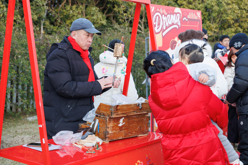 活动突破传统观演模式,打造沉浸式文化体验。在“环湖村晚好声音”决赛中,来自菱湖、宁湖、云湖、云湖四个社区的居民选手放歌湖畔,展现草根文艺活力。一旁的市集汇聚九大趣味游戏及版画拓印、糖画制作等非遗体验项目,让居民在互动中感受传统文化魅力。傍晚时分,百余位居民共同点亮并放飞孔明灯,以“灯耀新岁”仪式将温馨氛围推向高潮,凝聚起深厚邻里情谊。