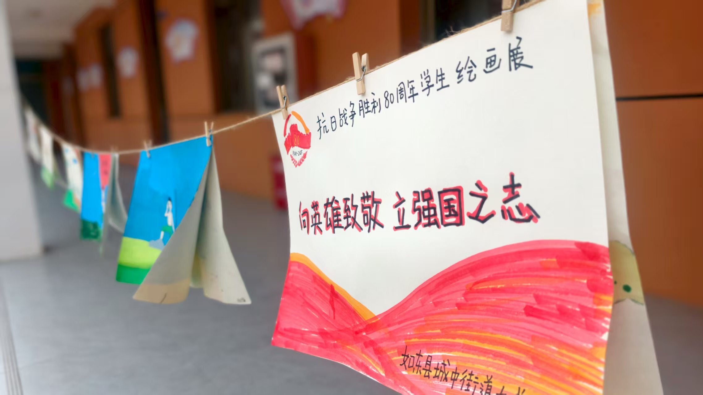 在金风送爽的九月,南通市如东县城中街道九总小学2025—2026学年第一学期开学典礼以纪念中国人民抗日战争暨世界反法西斯战争胜利80周年为主题举行摄影绘画展,向英雄致敬,立强国之志。