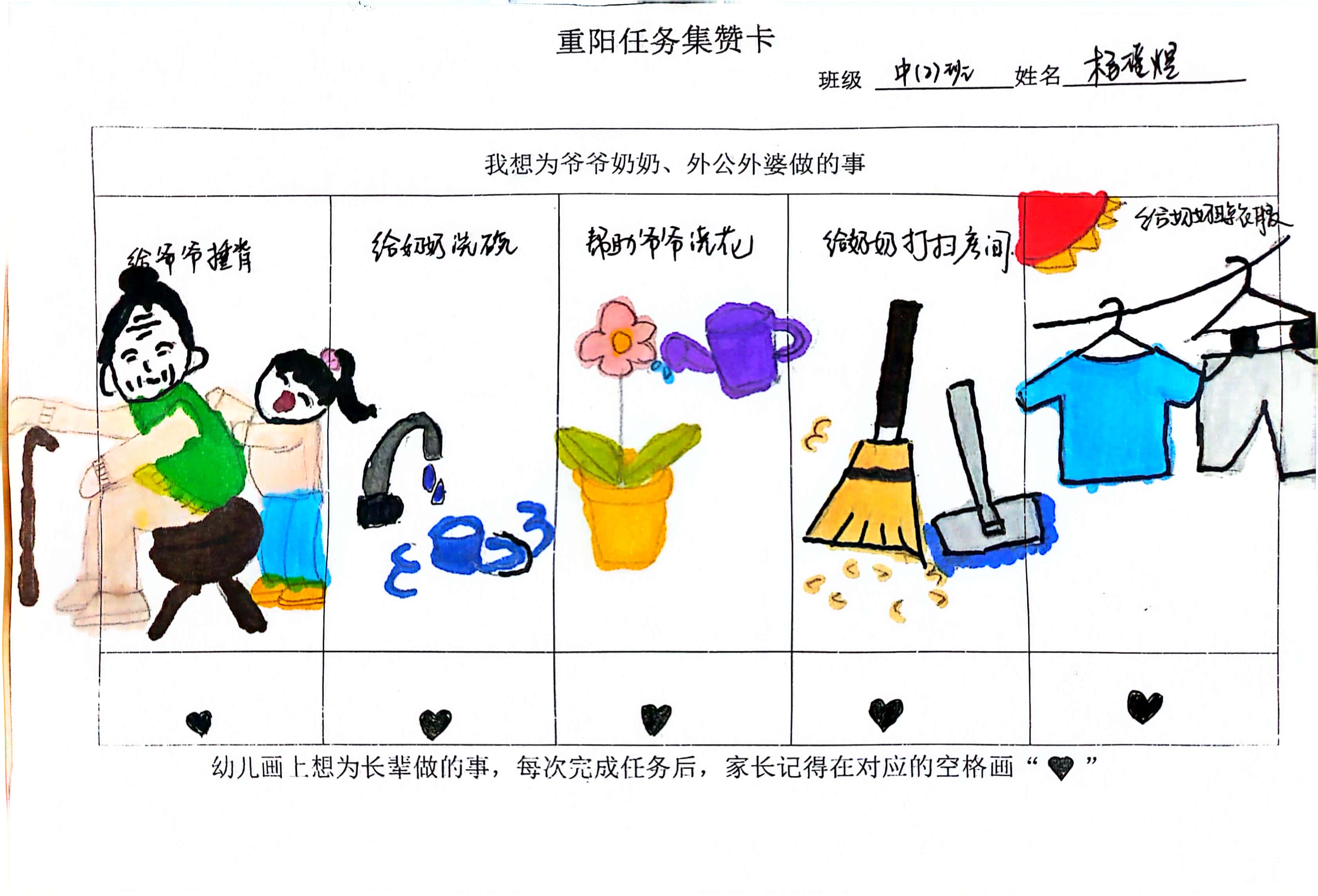 同时,幼儿园推出“重阳节集赞卡”:孩子们为祖辈捶背、端洗脚水、唱童谣后,可由家长记录并贴上年糕贴纸。“我集了5个贴纸啦!”中班幼儿乐乐举着卡片自豪地说,“奶奶说我是她的小棉袄。”前期准备让孝心教育从 “认知”走向“实践”,为节日活动奠定温暖基调。