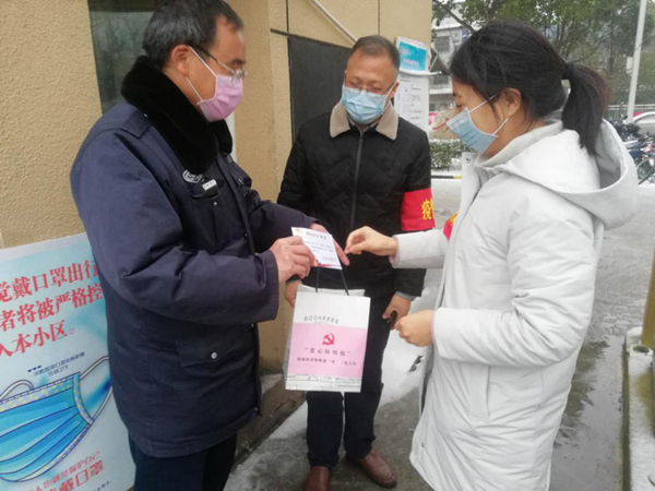 “今天突然下雪,气温也低,你们一定要做好保暖措施,这是我们街道党工委为你们准备的‘爱心防疫包’,里面有暖宝贴、口罩等等,非常感谢你们的付出。”钵池街道党工委副书记王炳刚挨个小区为一线人员送上“爱心防疫包”,送去党和政府的关心关爱。