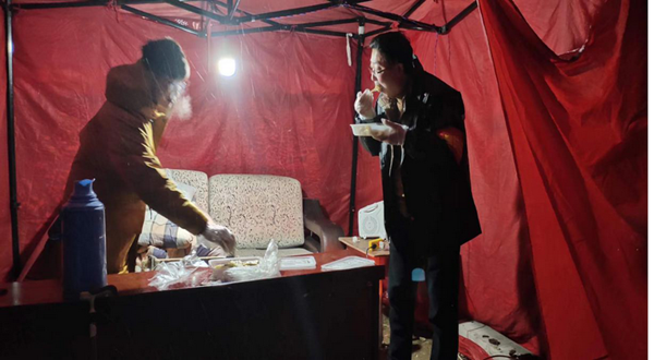 晚上9时,大湖城邦、东方凯旋城两个小区值守人员坐在指挥所帐篷里吃着街道送来的热乎饺子,感慨道:“这饺子暖到了我的心里,街道办还为我们送来了‘爱心防疫包’,今夜值守啊也不冷了。”