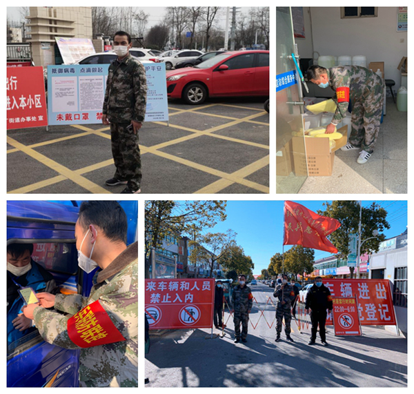 危难时刻,方显军人本色。二月份以来,在新型冠状病毒肺炎疫情防控阻击战中,南马厂街道30名退伍军人组成的民兵应急队在人武部部长孙金磊的带领下,冲锋在前,用自己的实际行动展现了退伍军人特别能吃苦、特别能战斗、特别能奉献的作风。他们是卡口值守员、防控宣传员、物资运输员、秩序维护员,哪里有需要,哪里就会看到穿着迷彩服的身影在忙碌。