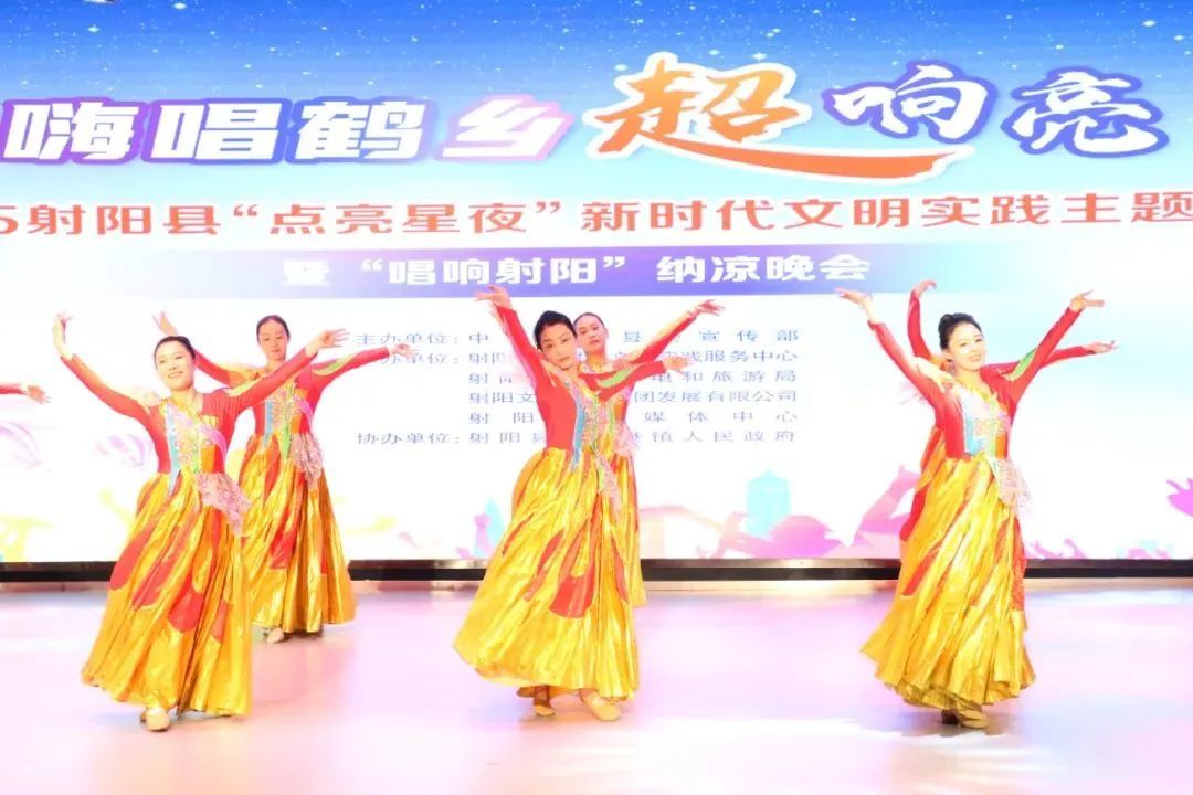 射阳县吾悦广场的红色纳凉晚会上,宣讲员讲述着“文抗”先辈以笔为枪的故事,台下观众听得入神,红色知识抢答时大家举着手喊答案。黄沙港镇泊心广场上,川剧变脸演员手袖一甩就换张脸谱,引得阵阵惊呼,《鱼虾满仓幸福来》的舞蹈跳着渔港丰收的喜庆。海河镇孩子蘸着颜料在扇面上拓印,大人跟着做艾草锤。洋马镇灯光球场,篮球赛正打得火热,夜跑队伍戴着荧光饰件跑过“十里菊香”步道,金菊广场上,村民跳着广场舞,志愿者递来消暑西瓜,晚风里满是欢喜。