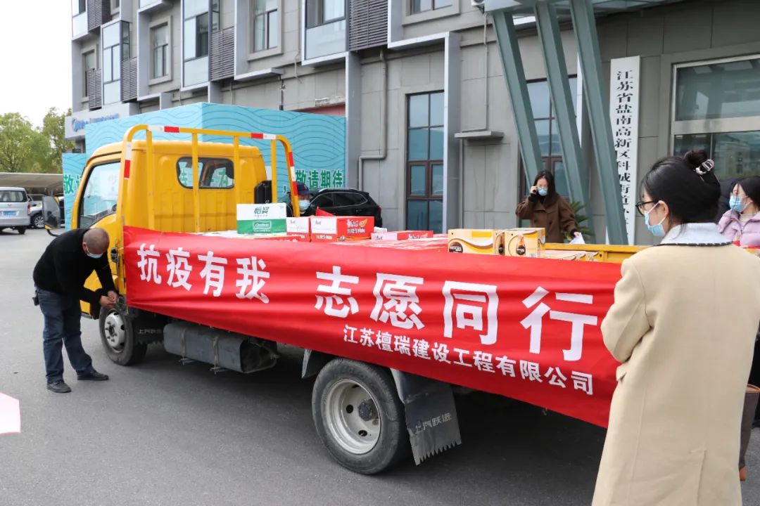 3月31日下午,江苏檀瑞建设有限公司满载医用口罩、方便面、饮用水、功能饮料等爱心物资车辆,抵达防疫前线——盐仓大道车辆查验点,向坚守“疫”线的工作人员、医务人员和志愿者送上了最诚挚的慰问。