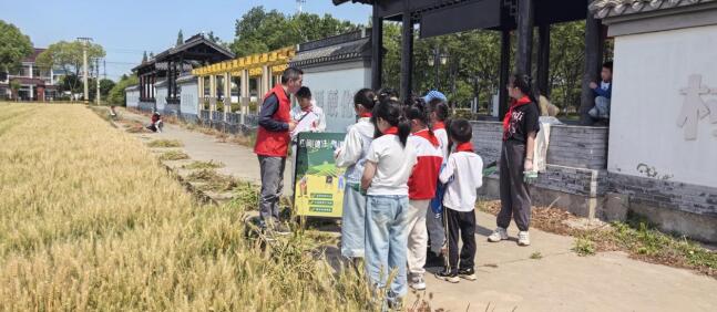 晨光微熹,麦浪翻金。5月11日上午,靖江市新桥镇关工委联合德胜村关工委、新桥城实验学校少工委、中心校关工委,共同开展了一次德法融合实践育人活动。少先队员代表、劳动社团学生、留守儿童和外来务工人员子女代表共三十余人,在志愿老师带领下走进德胜村青少年劳动教育和德法育人基地,开展“法护青苗绿润青春”法治劳动教育实践活动,通过沉浸式劳动体验与场景化法治教育相结合的方式,打造了一堂别开生面的法治生态文明实践课。