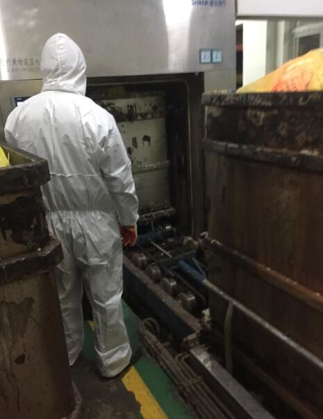在医废处置这个“隐形的抗疫战场”上,战斗却真枪实弹。医生患者接触过的一切物品:大量的口罩、防护服,还有病人使用过的床单被褥,包括病人吃过的盒饭碗筷,都属于新冠肺炎医疗废弃物。