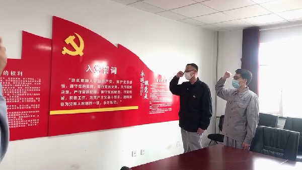 3月16日,面对鲜红的党旗,赵启南高举右拳,“火线”宣誓。经徐州国资委党委批准,赵启南在湖北工作一线被批准加入党组织,成为一名光荣的中共预备党员。