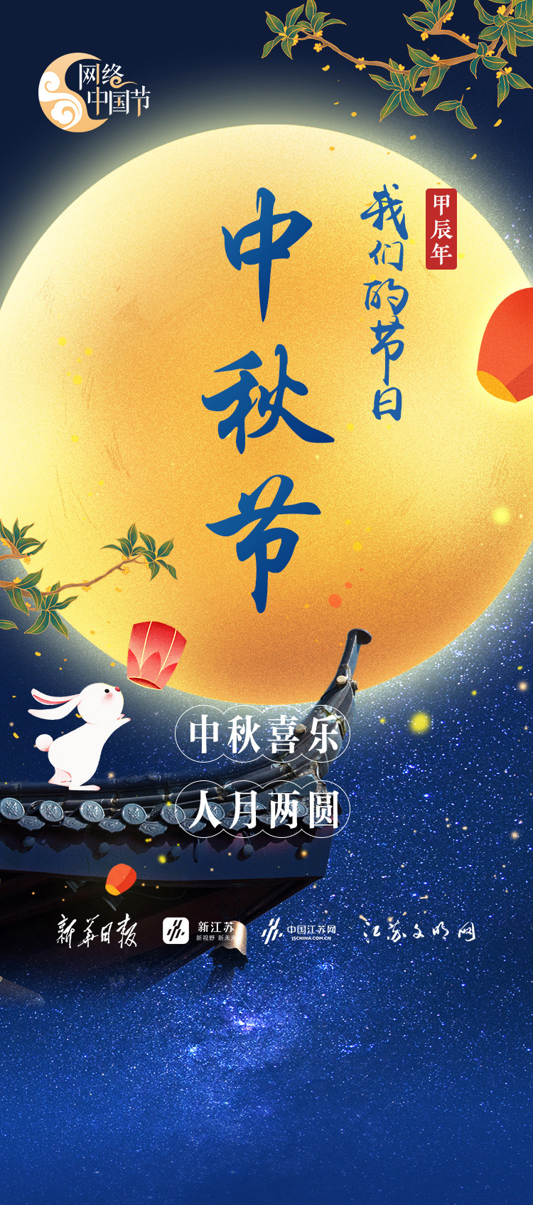 中秋节与春节、清明节、端午节并称为中国四大传统节日。中秋节,又称祭月节、月光诞、月亮节、团圆节等,节期为每年的农历八月十五,是我国民间的传统节日之一, 是仅次于春节的第二大传统节日。年年中秋,岁岁月明,天上人间,共此良辰。中秋节起源于上古时代,普及于汉代,定型于唐朝初年,盛行于宋朝以后。自古便有祭月、赏月、吃月饼、玩花灯、饮桂花酒等民俗,流传至今,经久不息。在这天,朋友相约赏月、扎灯笼、猜灯谜,非常快乐。