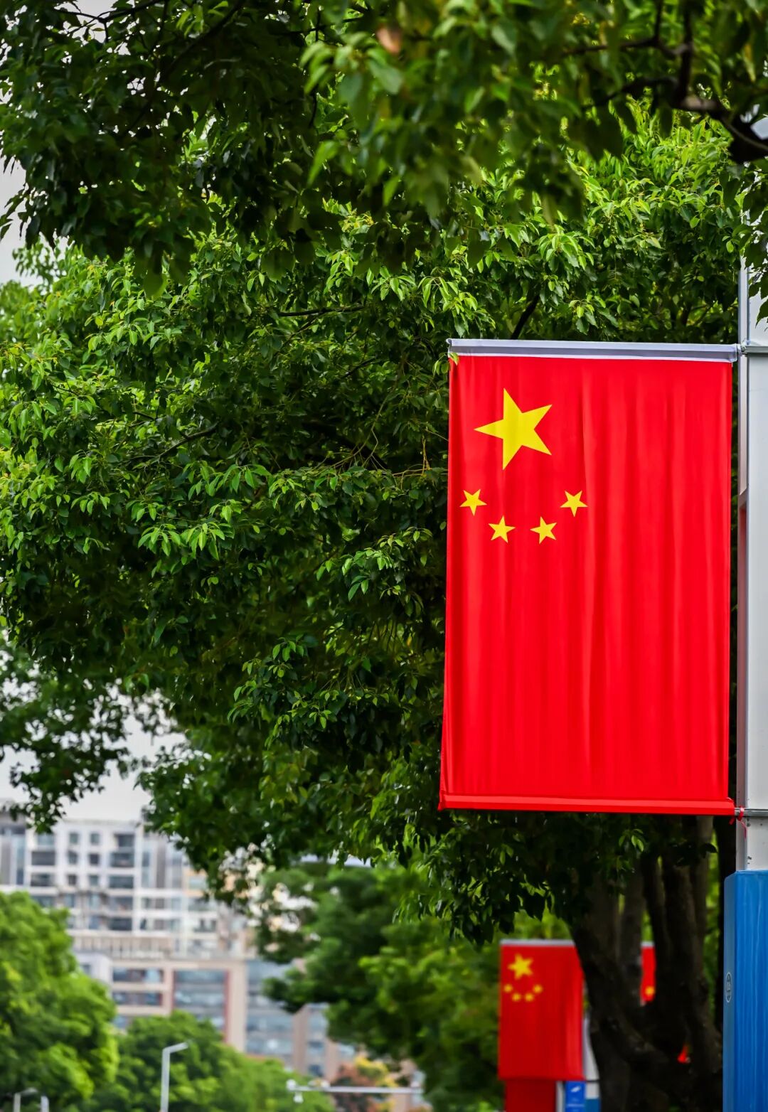 五星红旗与蓝天白云交相辉映