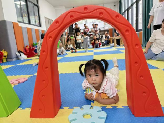 《中国娃 大闯关》游戏将活动推向高潮。孩子们在老师和家长的陪伴下,通过匍匐前进、摸爬滚打等动作,锻炼身体协调能力,也在趣味体验中初步感知历史,体会勇敢坚持的精神。随后亲子阅读《我爱我的祖国》和《小星星的大月饼》,进一步激发了孩子们对传统文化的深入了解,以及对祖国的认知与热爱。