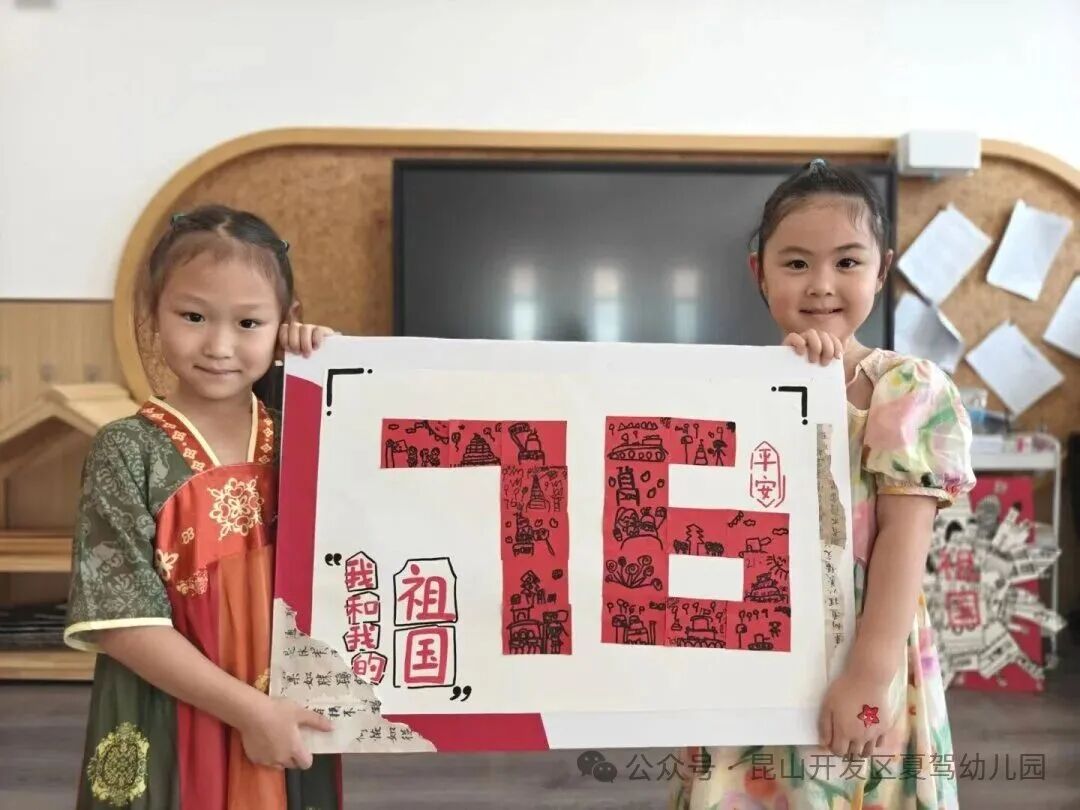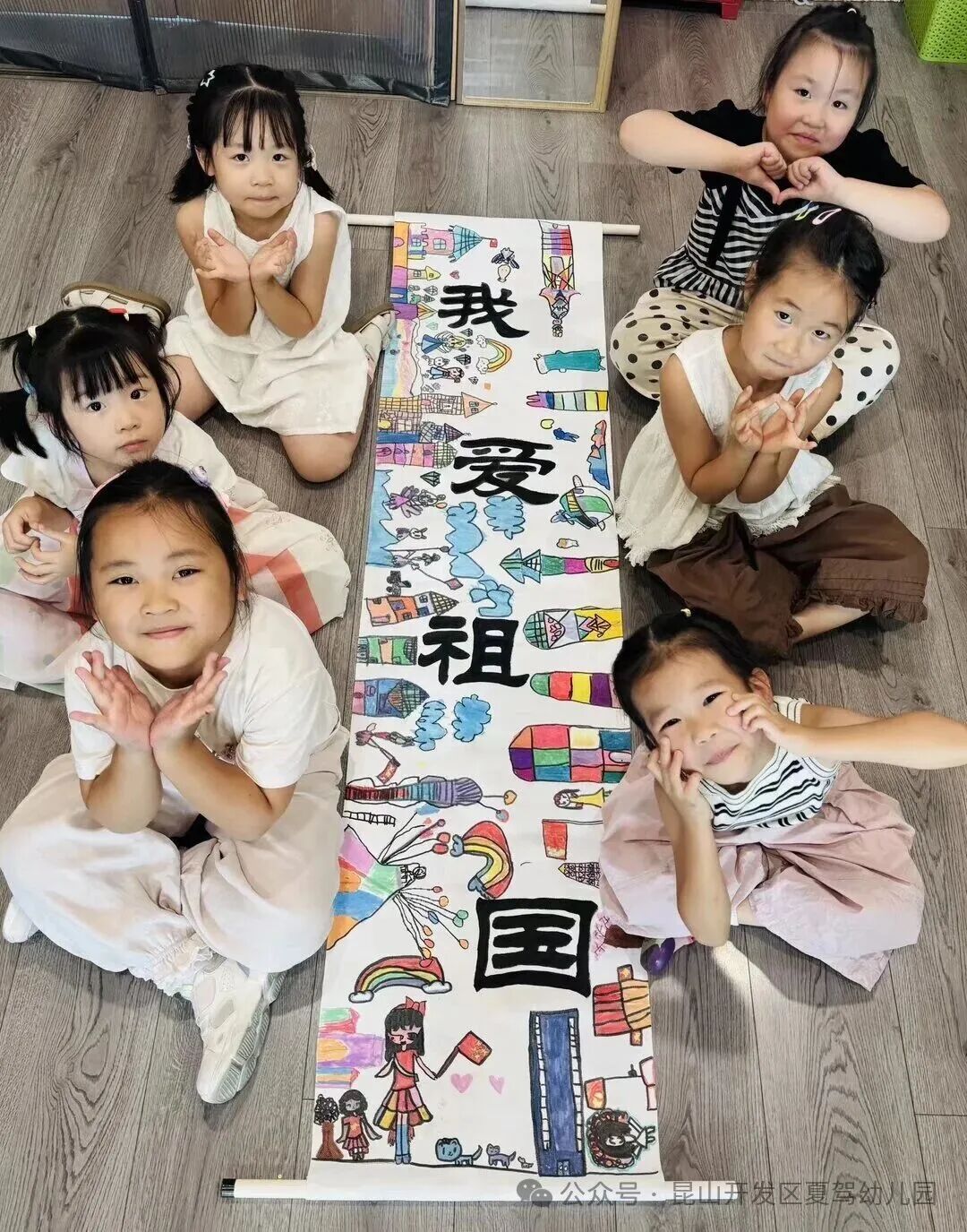 有的孩子画碧水蓝天,说 “这是祖国的漂亮风景”;有的孩子画高楼大厦,说 “这是我们住的城市”;还有的孩子画一群小朋友手拉手,中间写着 “我爱祖国”。