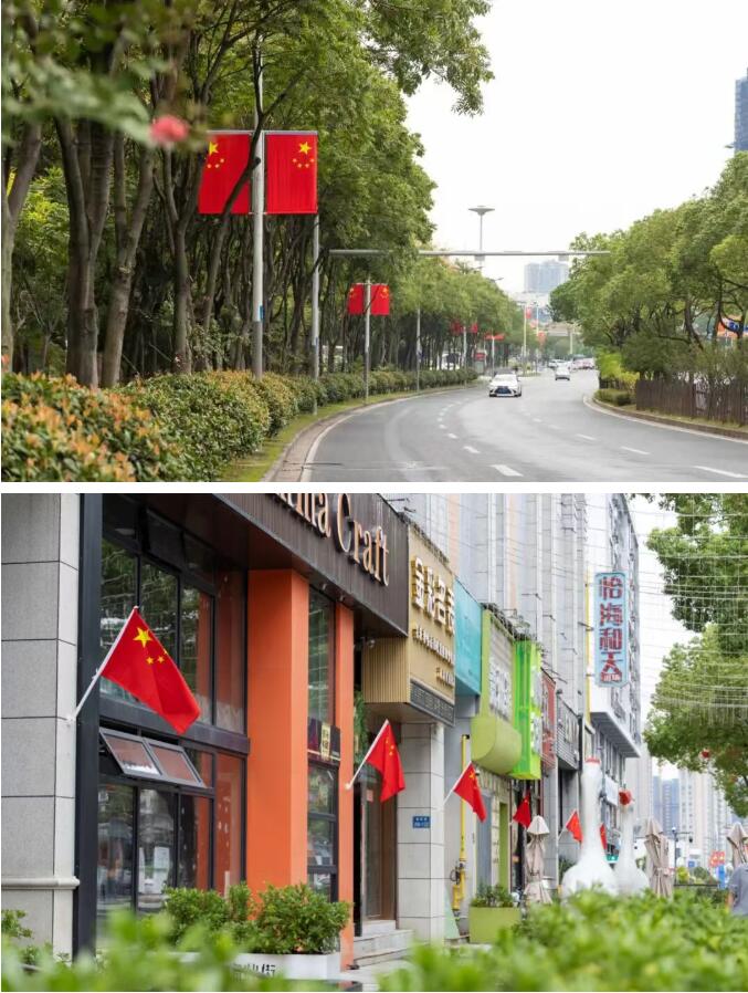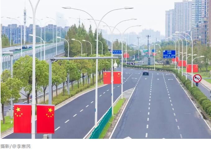 无锡照明相关负责人介绍,所有悬挂的国旗均选用符合国家标准的布制国旗,保证没有破损、污损、褪色或不符合规格等问题,同时采取竖向形式悬挂,上下两端予以固定,确保五角星朝外展示,为保障行人和车辆的通行安全,旗杆下端距离人行道地面4.5米。“本次氛围营造严格遵循节约原则。”该负责人表示,对去年使用过的国旗进行了精挑细选和重复利用。