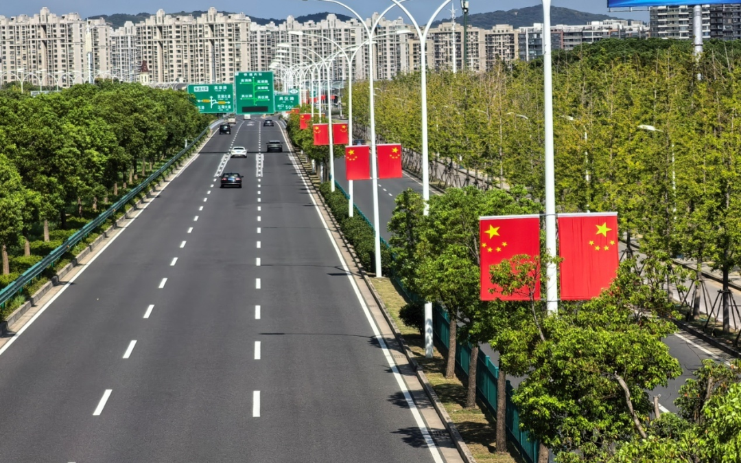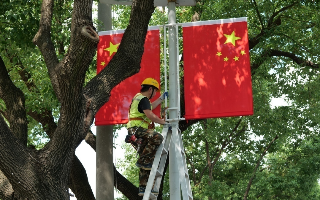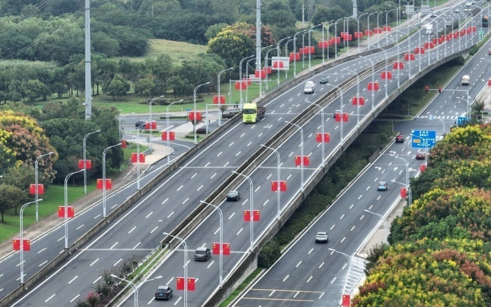 惠山区在政和大道、惠洲大道、惠山大道等67条重点道路悬挂国旗。国旗装扮连片开发园区与宜居新城,产业活力与节日喜庆相互融合,绘就现代化城区图景。