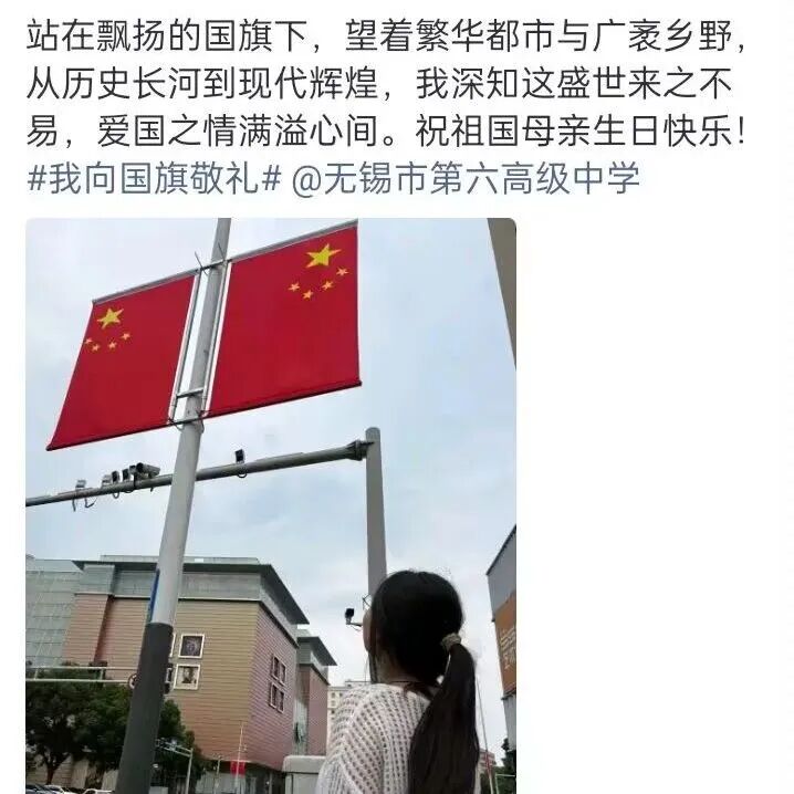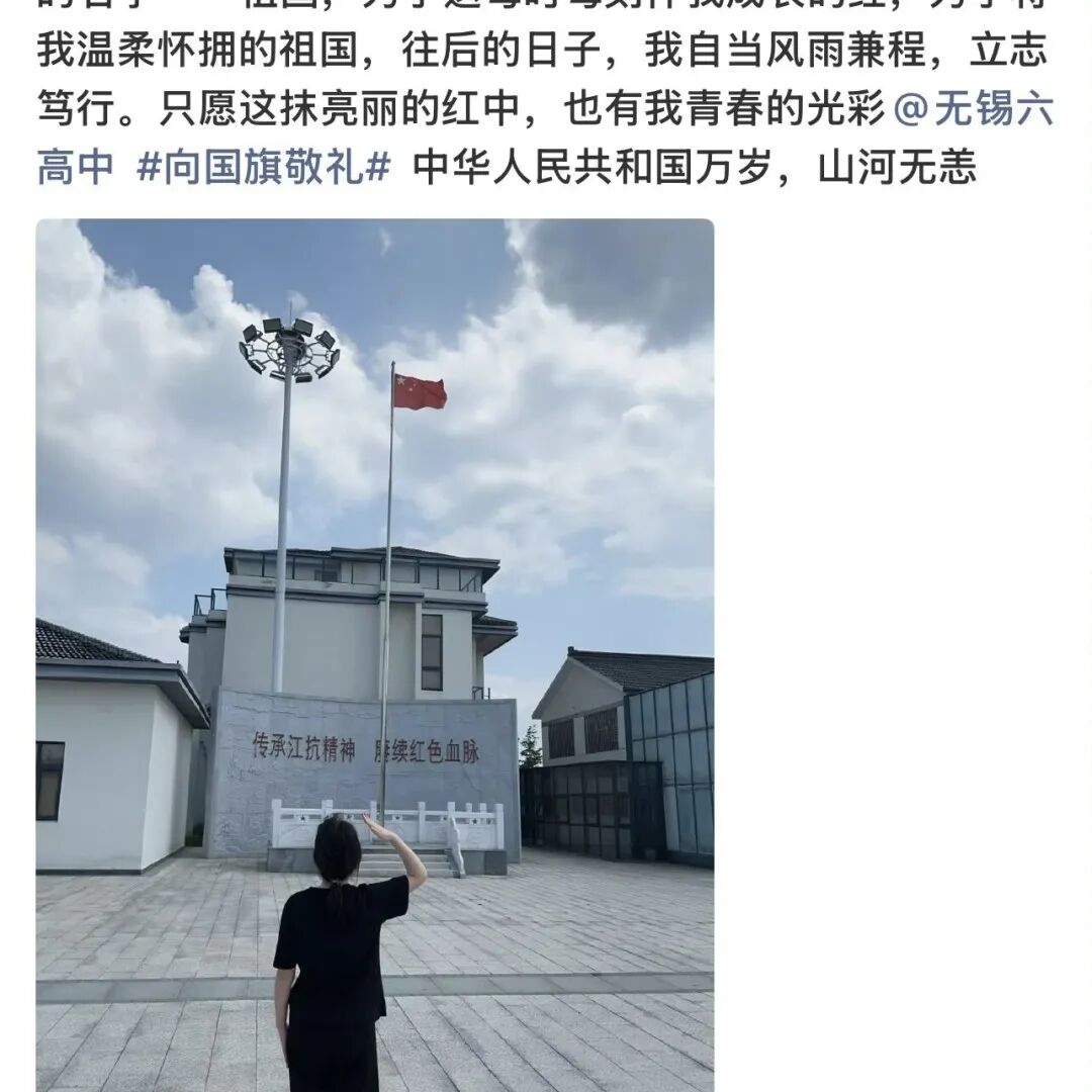 同学们通过微博平台接力传递,分享与国旗的合影,并写下真挚的祝福话语。“祝福祖国繁荣昌盛”“青春向党,挺膺担当”“请党放心,强国有我”等深情告白,展现了六高中学子对祖国的赤诚之心和新时代青年的责任担当。“我向国旗敬礼”话题下汇集了无数感人瞬间,成为这个秋天锡城最温暖的风景。