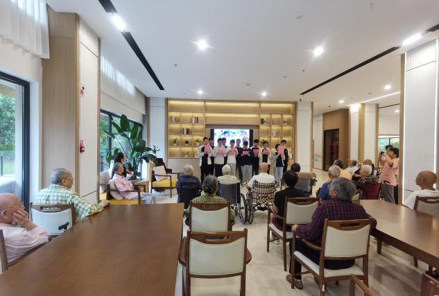 活动伊始,护理院大厅内整洁明亮,老人们眼中洋溢着期待与喜悦。同学们以一首激昂澎湃的《沁园春·长沙》朗诵拉开序幕,铿锵有力的词句回荡在大厅中,仿佛将老一辈的奋斗记忆与青少年的理想壮志紧密相连。