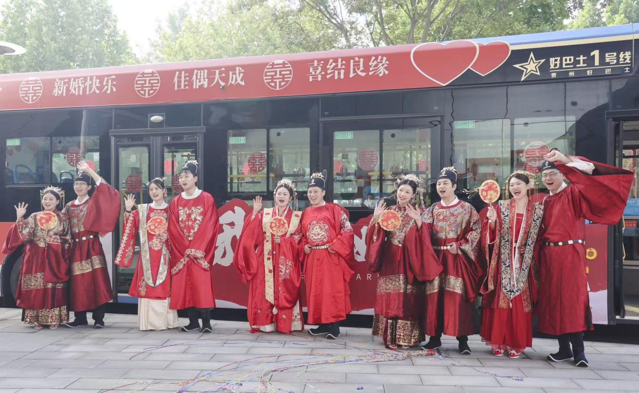 5月20日,“泰有喜事·我在新时代文明实践中心办婚礼”集体婚礼在医药高新区(高港区)雕花楼景区新时代文明实践点温馨举行,5对新人乘坐“幸福巴士”,穿梭于城市街头,将喜悦传递给沿途市民。“坐着‘幸福巴士’接受市民祝福,让我们觉得自己的婚事有了更特别的意义。”新娘许子绮说。