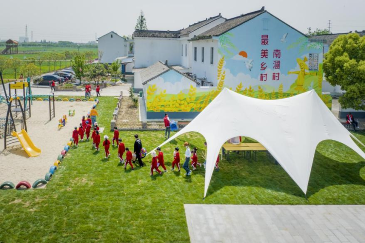 长泾镇上,“东舜客厅”、风雨文化长廊、蒲市印象书屋等7个“泾”彩生活微空间,绘就了一幅生态宜居的美丽乡村画卷。村民纷纷表示,“微更新”改造后的公共空间既保留了乡愁记忆,又增添了现代设施,特别是“泾里俏江南”灯光秀成为亲子休闲娱乐的热门打卡点。