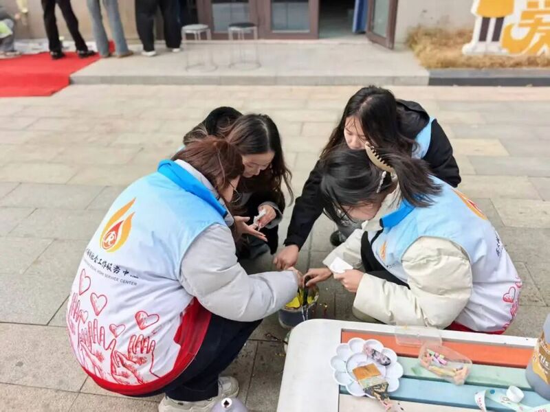 在拼豆手工活动现场,高校志愿者与社区居民齐聚一堂,共同感受手作迎新的乐趣。在志愿者细致指导下,居民们巧妙组合各色拼豆,逐步制作出“福”字、灯笼等富有年味的作品。活动现场气氛温馨,笑语不断,青年与长者在互动中交流手艺、分享故事,情感在协作中自然融合。部分成品赠予现场居民,传递了诚挚的新春祝福,也体现了志愿服务温暖双向流动的内涵。