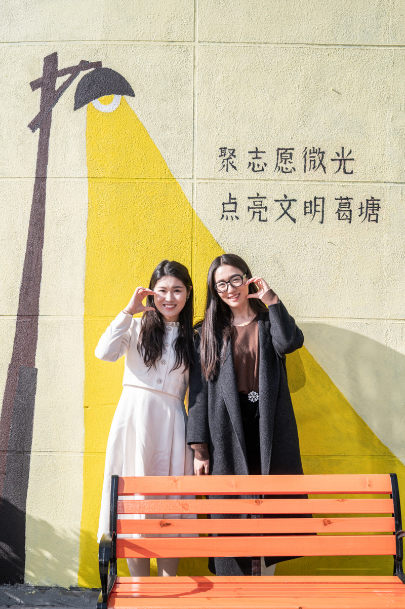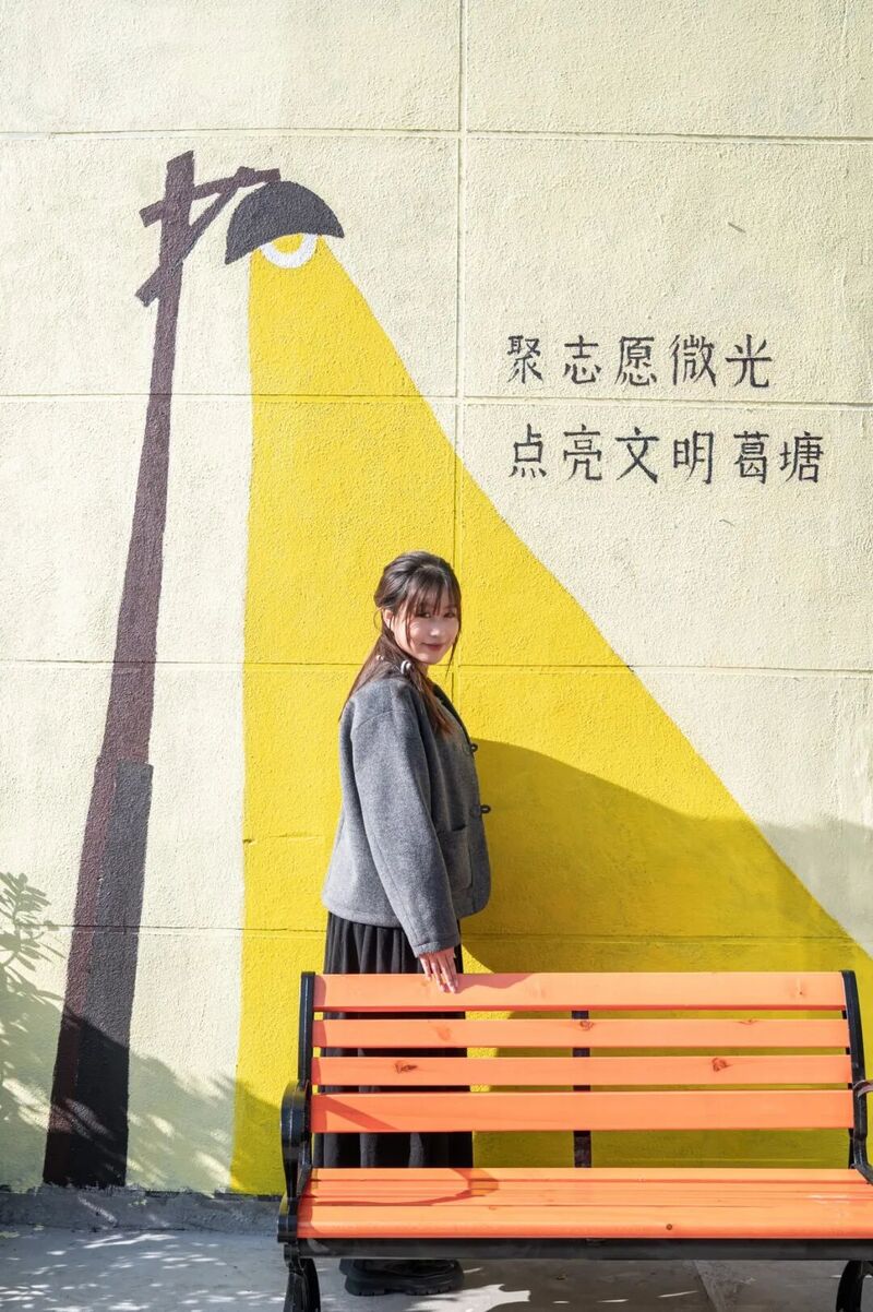 活动尾声,参与者们手持拼豆作品,前往主题墙绘、授旗纪念地等特色场景打卡留念。大家带着 #大学生打卡葛塘实践所# #葛塘实践所青春绘#等话题,将打卡照片与参与感悟分享至小红书,以青年喜闻乐见的方式传播志愿精神,进一步扩大“大美葛塘”志愿服务品牌的覆盖面与影响力。