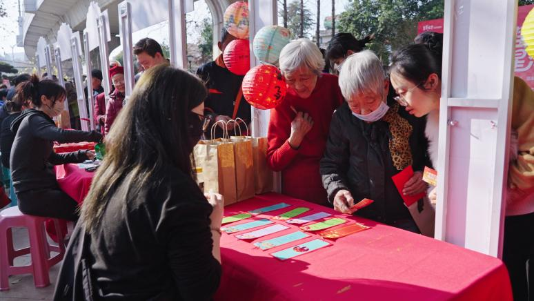 活动现场的互动体验区人头攒动,处处洋溢着喜庆祥和的节日氛围。星河投壶游戏前,孩子们手持箭矢,屏气凝神瞄准壶口,每一次成功投中都引来阵阵欢呼;新风灯谜阵下,红彤彤的灯笼与谜面交相辉映,居民们或独自沉思,或三五成群讨论谜底,将移风易俗、文明礼仪等知识融入趣味竞猜中;垃圾分类“新”行动游戏摊位前,亲子家庭踊跃参与,通过模拟投放游戏学习分类技巧,在寓教于乐中践行环保理念;新春拓印体验区,非遗传承人现场指导居民们将福字、生肖图案拓印在红纸上,一幅幅带着墨香的作品承载着对新年的美好祈愿。