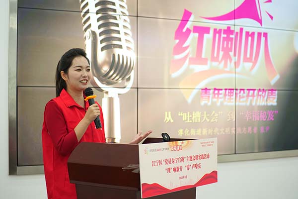 活动在轻松活泼的氛围中拉开帷幕。淳化街道新时代文明实践志愿者张尹以一场别开生面的理论宣讲脱口秀《从“吐槽大会”到“幸福秘笈”》,将社区治理中的“槽点”转化为共建共享的“亮点”,用幽默语言解码“居民共治”的鲜活实践,引得现场掌声笑声不断,拉近了宣讲与群众的距离。