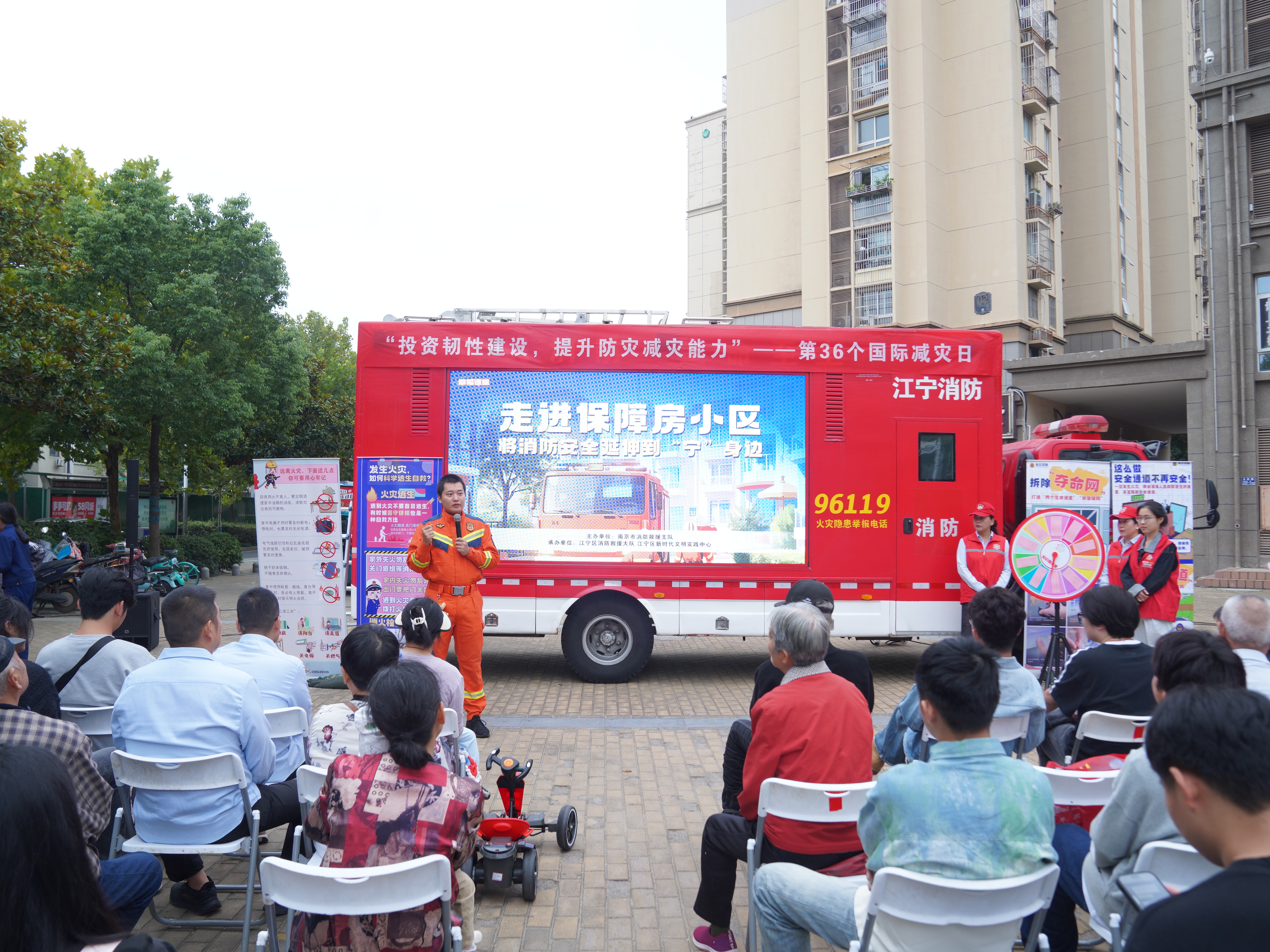 今年10月13日是第36个国际减灾日。当天,由南京市消防救援支队主办,江宁区新时代文明实践中心、江宁区消防救援大队联合承办的“走进保障房小区—将消防安全延伸到‘宁’身边”文明实践主题活动,在东山街道大里社区新时代文明实践广场热闹开展。活动以“沉浸式体验+互动式教学”的形式,推动消防安全意识真正融入居民生活。