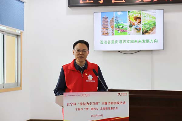 在“理响谷里”环节,谷里街道党工委书记、新时代文明实践所所长周贵平围绕农文旅融合发展,号召基层党员干部要与群众携起手来,以提升全域旅游品质、拓展乡村休旅功能、放大美丽乡村品牌为抓手,通过持续优化旅游服务设施、丰富乡村休闲体验内容、打造具有谷里特色的文旅品牌,让美丽乡村既有“颜值”更有“价值”。