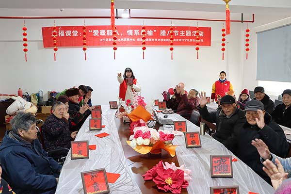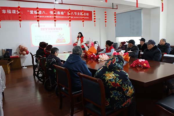 腊八节到来之际,江宁区新时代文明实践中心携手横溪街道新时代文明实践所,走进国弘护养院,共同开展“爱暖腊八,情系桑榆”主题活动,为长者们送上节日的关怀与祝福。
