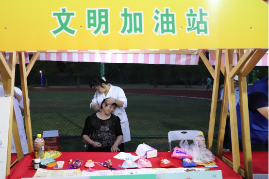 更暖心的是,活动现场还精心设置了便民服务文明加油站,大家在观赛之余可以享受免费的推拿刮痧体验、手机贴膜等服务,家长带着孩子参加防诈反诈、文明交通、文明养犬知识问答,邻里间可以相互交流生活妙招。健康义诊桌前围满了前来体验的居民,志愿者也全部就位,随时为有需要的居民提供帮助。这份“零距离”的服务,让大家在感受篮球赛欢乐的同时,体会到实实在在的温暖。