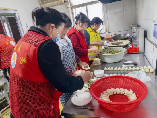 当天,姜家村两个助餐点内暖意融融、热闹非凡。志愿者早早来到现场,准备好饺子皮和馅料后,分工协作,熟练地包起饺子。大家动作麻利、配合默契,不一会儿,托盘上就摆满了饱满圆润的饺子。经过精心蒸煮,热气腾腾的饺子被打包,分发给前来参加活动的老人们。老人们领到饺子,脸上笑容灿烂,“这饺子吃在嘴里,暖在心里。”