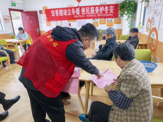 便民服务环节更是干货满满。姜家村便民服务站“姜心比心”志愿者结合老年人的实际需求,用通俗易懂的语言详细讲解了医疗保险缴费标准、缴费渠道、报销流程等关键政策,对老人们提出的疑问逐一解答,确保大家都能清晰了解相关政策,切实保障自身权益。村卫生室医生现场为老人们测量血压,细致询问他们的身体状况,并结合秋冬季气候特点,讲解了流感预防、防寒保暖、饮食调理等健康知识,引导老人们养成科学的生活习惯,守护身体健康。